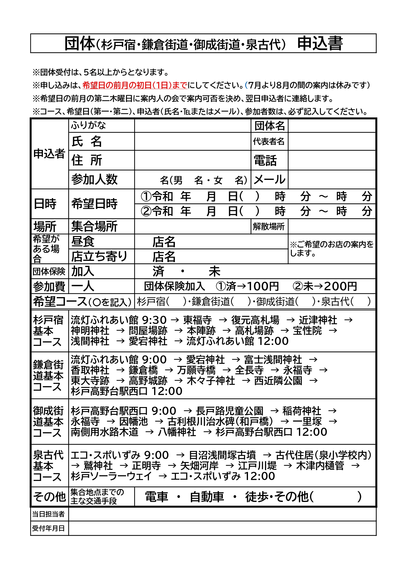 杉戸宿案内人と歩く「まち歩き」団体申込書はこちらからダウンロード